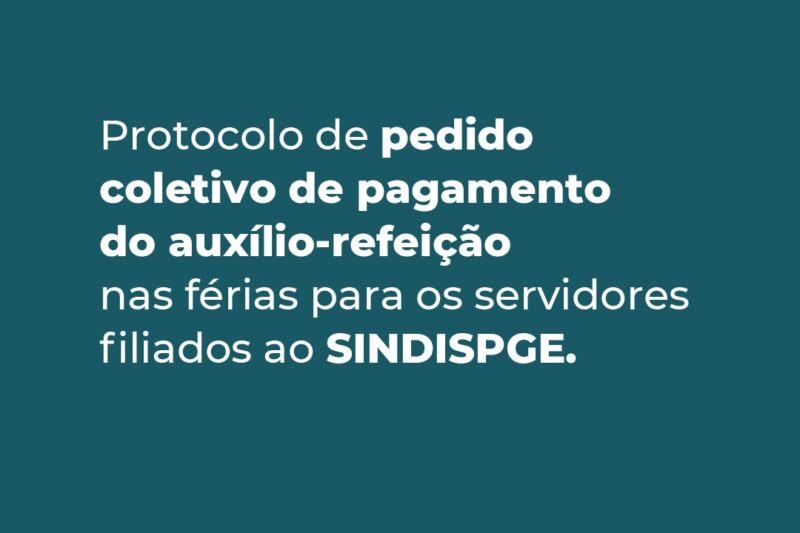 SINDISPGE formaliza pedido coletivo de pagamento do auxílio-refeição nas férias para os seus filiados SAIBA MAIS