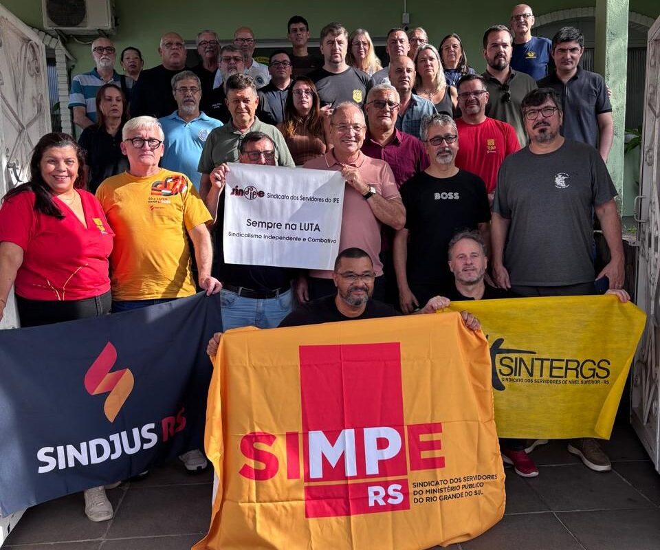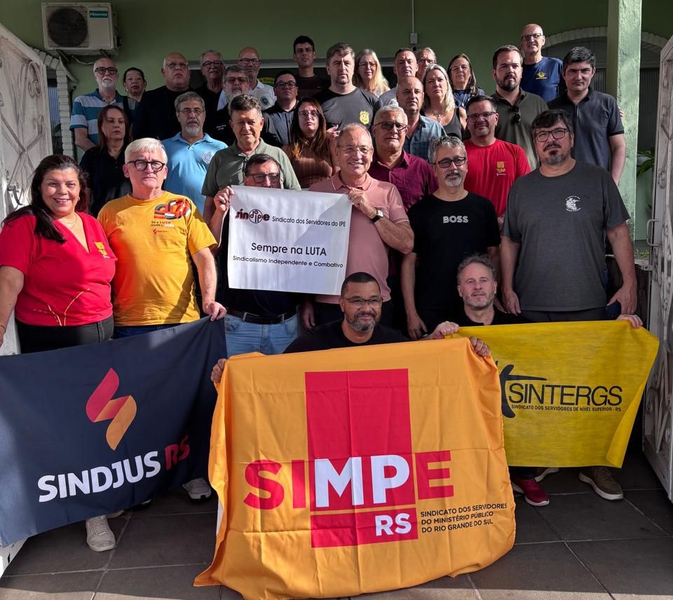 Nesta quarta-feira (15/04), os diretores do Sindispge Lucas Friderichs Ludwig Wickert e Flávio André Boff participaram de uma reunião com dezenas de entidades que representam os servidores do Executivo.